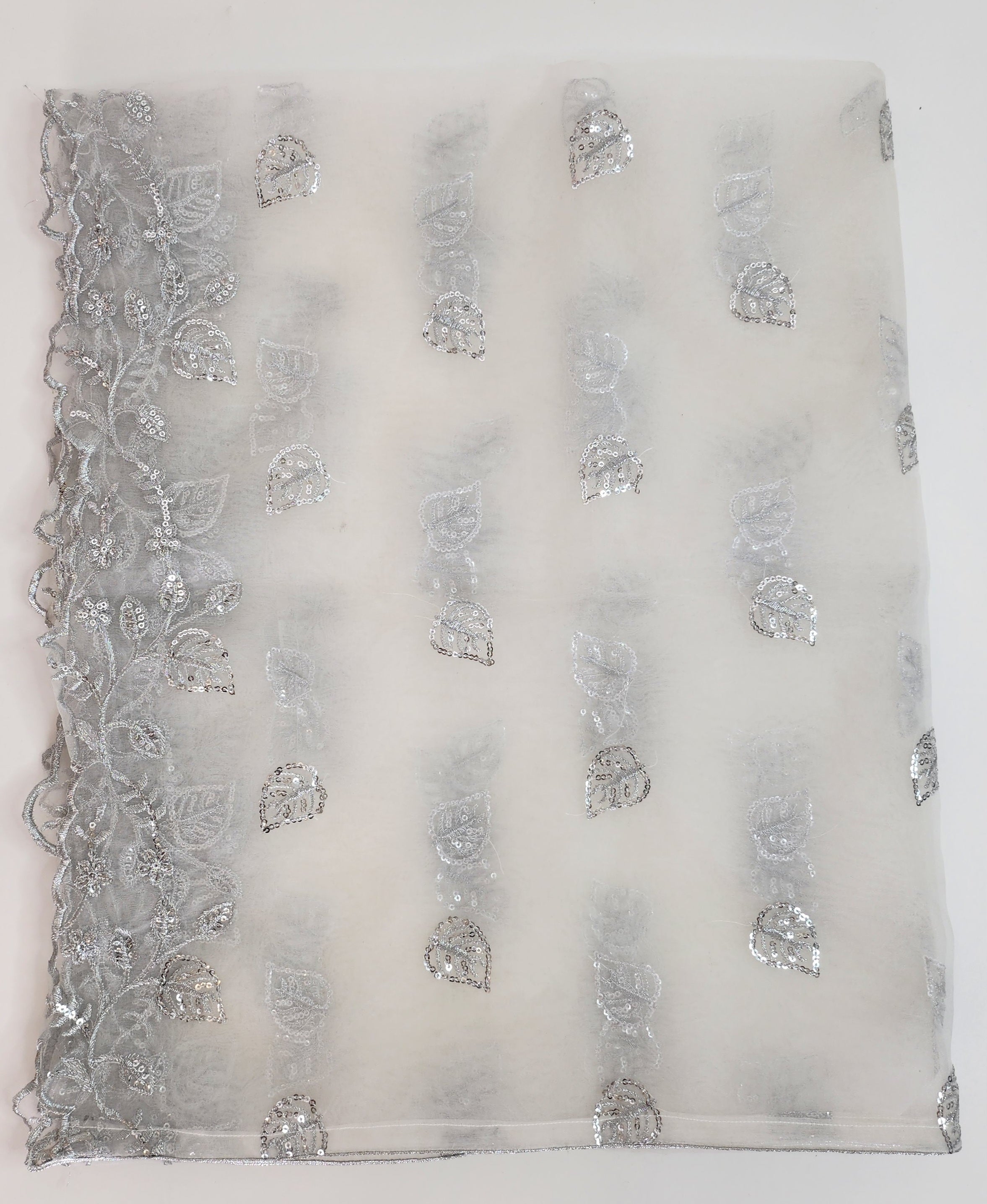 SABEEN MANEKIA - White organza with silver leaf embroidery Dupatta