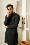 KUNZUL CHANNAR ( MENSWEAR ) - Dark Black with Motifs Kurta and Trouser
