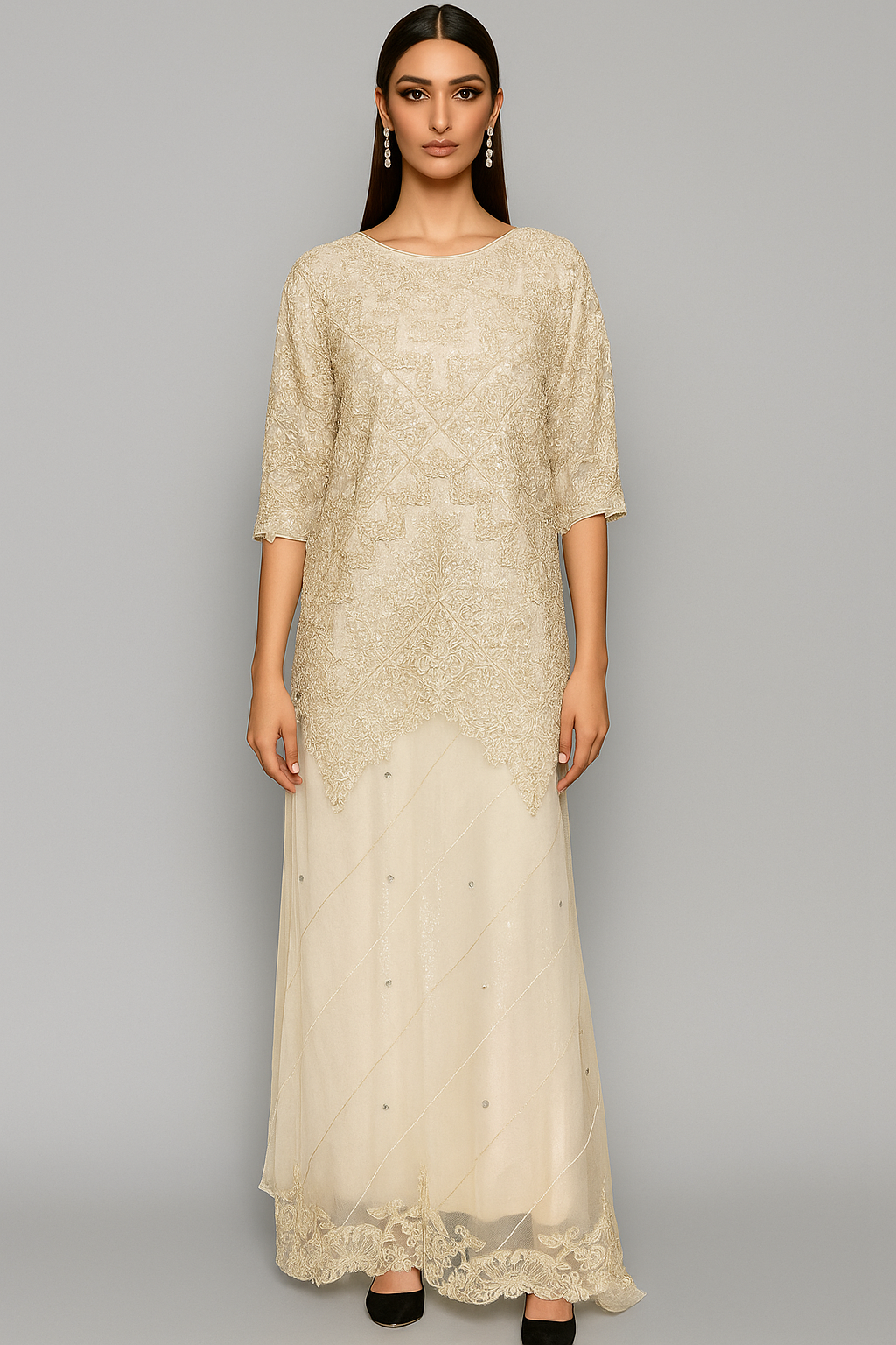THREADS AND MOTIFS - Net Embroidered Kaftan